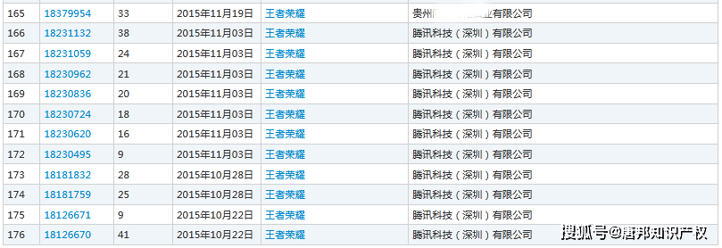 在《王者荣耀》上线之前,腾讯公司就悄悄进行了商标布局。腾讯公司于2015年10月22日一口气注册了第41、第9类、第25类、第28类、16类等11件“王者荣耀”商标。