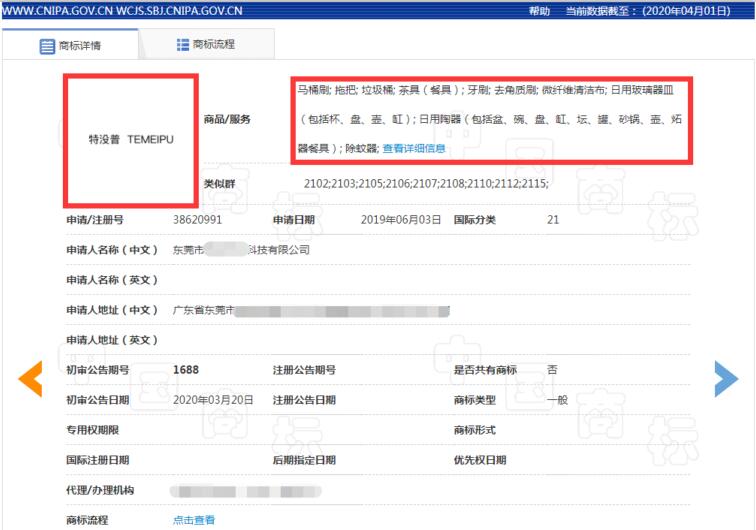 据了解,第38620991号“特没普”商标由东莞市某科技公司于2019年6月3日申请,2020年3月20日初审公告。